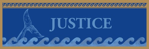 Symbols: Scales, Sword, Globe, and Large Toothed Sea Creatures